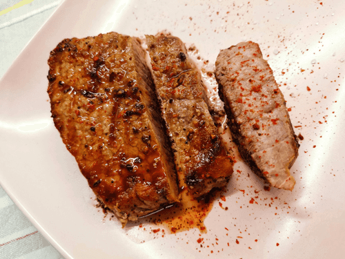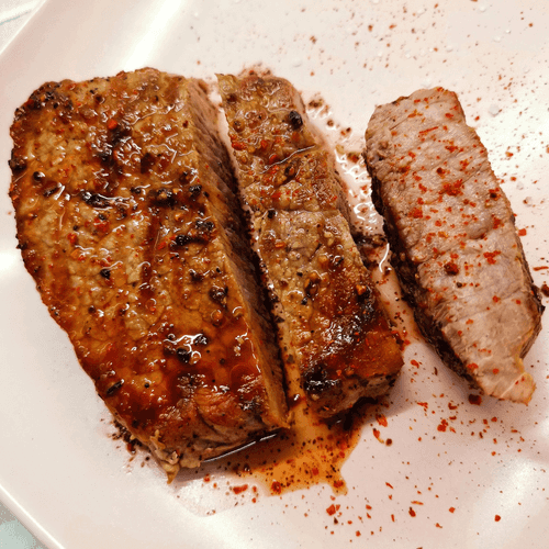 Стейк из говяжьего антрекота — воплощение страсти к мясу и искусство кулинарии. Этот рецепт уходит корнями в традиции авторской кухни, где каждая специя тщательно подобрана для раскрытия глубоких вкусовых оттенков. Говяжий антрекот, пропитанный горчичным маслом, приобретает насыщенный аромат и мягкость. Смесь перцев, морская соль, орегано и сумах придают мясу пикантную сложность, а завершающая нотка перца чили добавляет легкую остроту. Готовится на горячей сковороде-гриль, что позволяет создать идеальную корочку, сохранив сочность внутри. Этот стейк — идеальный выбор для тех, кто ценит богатый мясной вкус, наслаждение каждой текстурой и магию специй. Подавать рекомендуется с бокалом красного вина или ароматными травами для полного погружения в гастрономическое удовольствие.