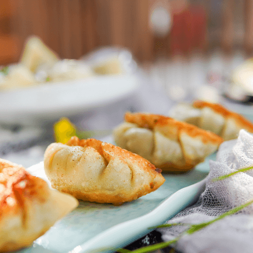 Жареные пельмени по-китайски (цзяоцзы) — это яркое блюдо китайской кухни, символизирующее уют и семейные традиции. Их история уходит корнями в древний Китай, где цзяоцзы считались знаками достатка и благополучия. Хрустящая золотистая корочка, сочная мясная начинка с оттенком имбиря и свежести кинзы делают их незабываемыми на вкус. В отличие от вареных пельменей, жареные цзяоцзы приобретают аппетитную текстуру и насыщенный аромат. Они идеально дополняются соевым соусом и тонкими ломтиками лука-порея. Подавать их можно как самостоятельное блюдо или в сочетании с пикантными китайскими гарнирами. Цзяоцзы — не просто еда, а настоящее гастрономическое путешествие в сердце китайской кулинарии.