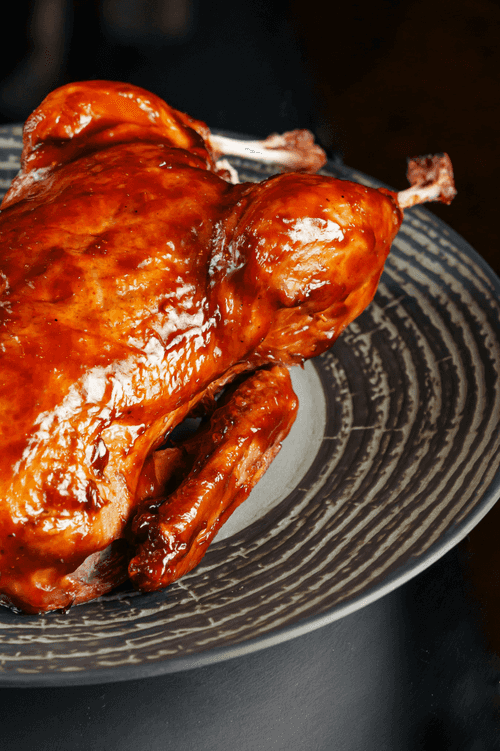 Запаковать утку в пищевую пленку и отправить в печь на пару часов до мягкости.