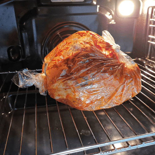 Через час вскрыть рукав и отправить в духовку еще на 10 минут, увеличив температуру до 200 градусов.