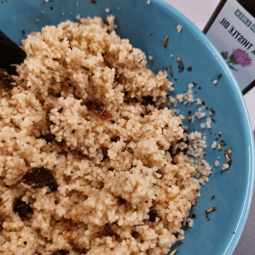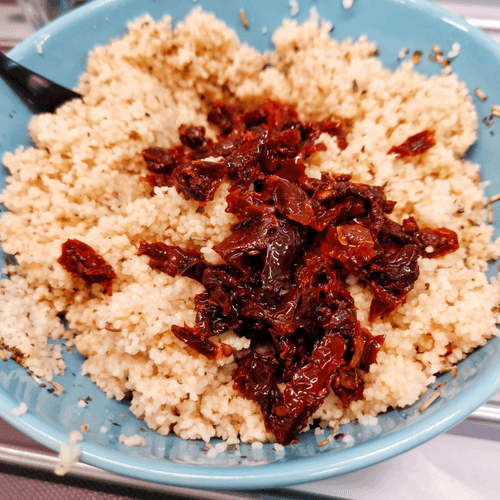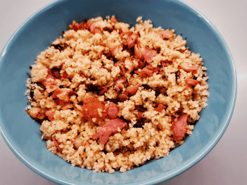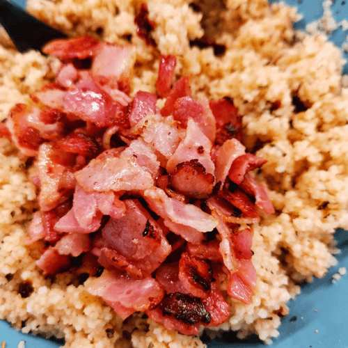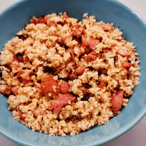 Этот авторский рецепт кускуса с беконом и вялеными томатами – воплощение гармонии простых ингредиентов и утонченного вкуса. Кускус, напитанный ароматом итальянских трав и перцев, приобретает пикантную глубину, идеально дополняемую сладковато-кислым оттенком вяленых томатов. Обжаренный до золотистой корочки бекон вносит хрустящую текстуру и насыщенность, делая блюдо особенно сытным. Масло расторопши добавляет легкую ореховую нотку, завершая гастрономическую картину. Такой кускус подходит как самостоятельное блюдо, так и прекрасный гарнир к мясу или рыбе. Его легкость и изысканность делают его удачным выбором для уютного семейного ужина или праздничного стола.