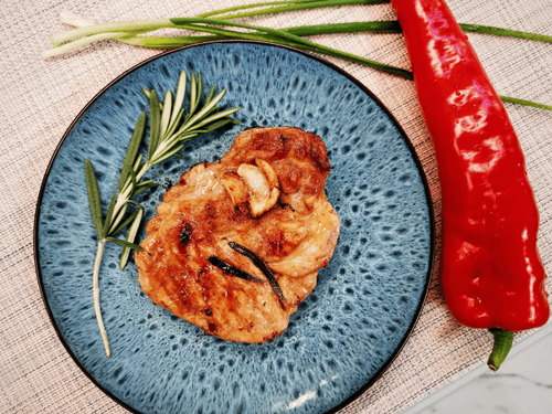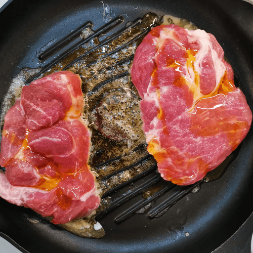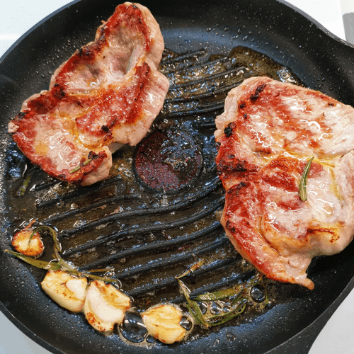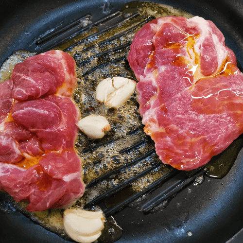 Стейк из свиной шеи на сковороде гриль