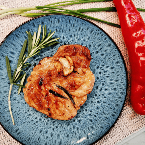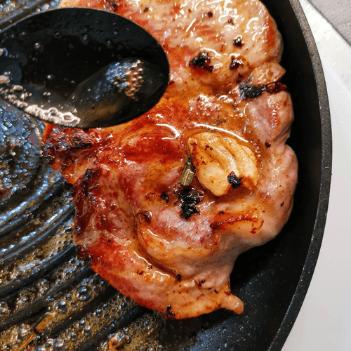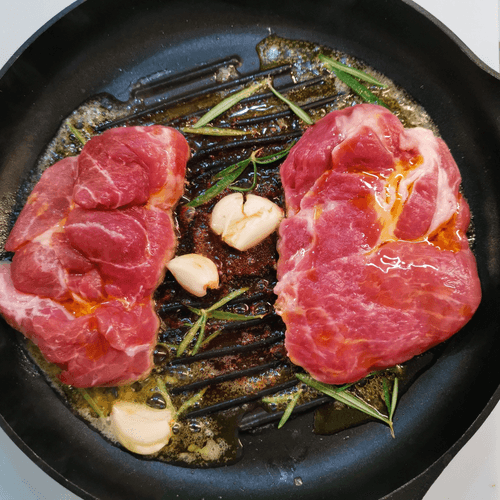 Стейк из свиной шеи на сковороде-гриль — это сочетание сочности и аромата, достойное гурмана. Истоки этого метода приготовления уходят в традиции жарки мяса на открытом огне, но адаптированы для удобства современной кухни. Благодаря обильному сливочному маслу мясо пропитывается нежным, сливочным вкусом, а чеснок и розмарин добавляют изысканную пикантность. Горчичное масло создаёт тонкую пряную нотку, делая каждый кусочек насыщенным. Такой стейк идеален как основное блюдо, его можно подавать с запечёнными овощами или свежими травами. Блюдо покоряет не только вкусом, но и лёгкостью приготовления. Важно соблюдать последовательность шагов, чтобы добиться идеальной корочки и раскрыть богатство ароматов. Этот рецепт воплощает в себе уют домашней кухни с ресторанным качеством.