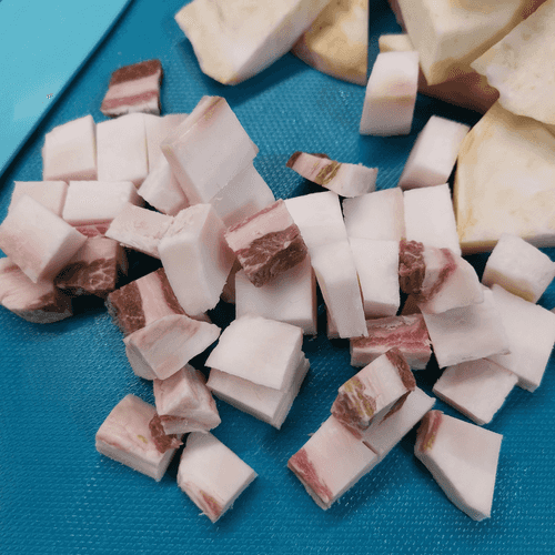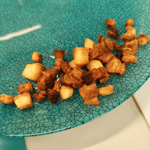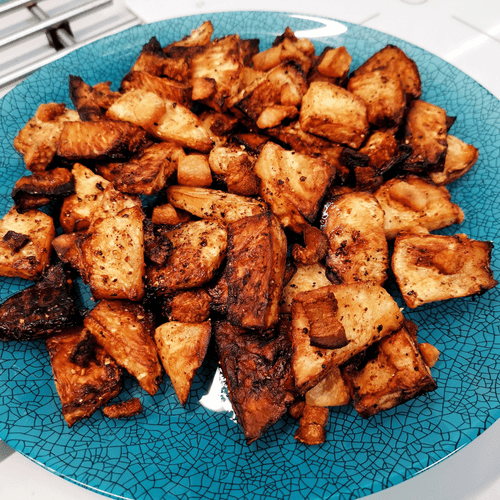 Корень сельдерея, обжаренный на сале — это ароматное и насыщенное блюдо, которое объединяет нежную текстуру овоща с хрустящей, поджаренной ноткой сала. Сельдерей, богатый минералами и витаминами, приобретает насыщенный, слегка карамелизированный вкус под воздействием шкварок. Лимонный сок добавляет свежесть, а чесночные специи и черный перец усиливают глубину аромата. Блюдо родилось из кулинарного поиска гармонии между овощами и животными жирами, популярного в традиционной кухне Европы. Идеально подходит как самостоятельная закуска или гарнир к мясным блюдам, оно радует своей простотой и натуральностью. Кушать его лучше горячим, когда сельдерей пропитан ароматами и остаётся сочным внутри, а снаружи приобретает аппетитную золотистую корочку.