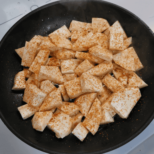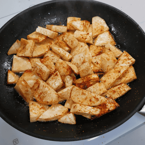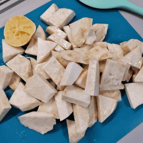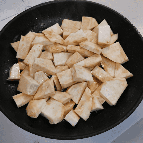 Корень сельдерея, обжаренный на сале
