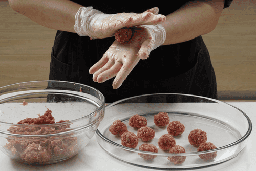 Слепить из фарша фрикадельки размером с перепелиное яйцо.