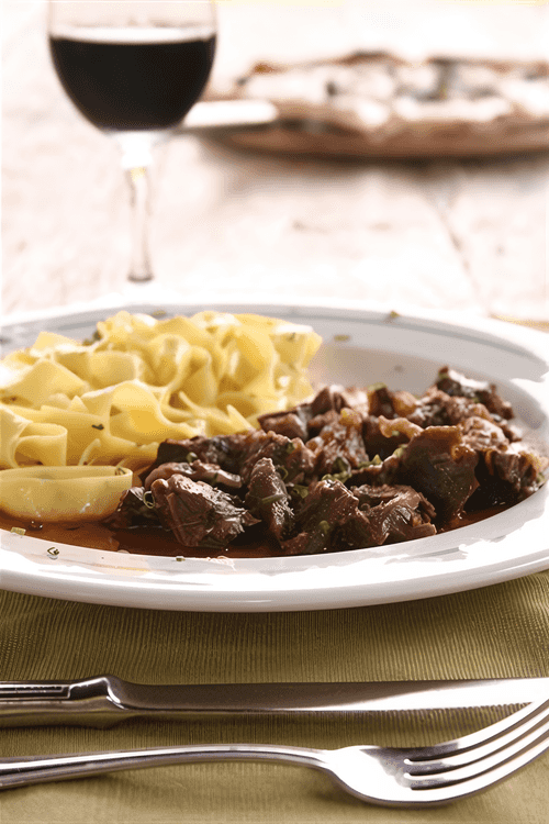 Говядина тушеная с макаронами