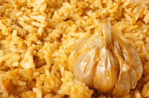 Белый рис с чесноком — это простое, но изысканное блюдо русской кухни, которое сочетает мягкость воздушного риса с насыщенным ароматом чеснока. История этого рецепта уходит корнями в традиции русской кухни, где рис с добавками часто использовался как гарнир к мясным и рыбным блюдам. Легкая пряность куркумы добавляет тонкий восточный оттенок, придавая рису теплый золотистый цвет. Вкус блюда — нежный, слегка ореховый, с пикантными нотками чеснока, который раскрывается благодаря предварительному обжариванию. Белый рис с чесноком прекрасно подходит к запечённому мясу, овощам или как самостоятельное блюдо. Его можно подавать горячим, когда он особенно ароматен и согревающий, или охлаждённым, как лёгкий гарнир к летним блюдам.
