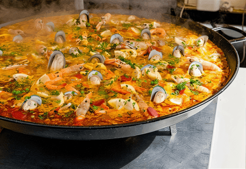Паэлья с морепродуктами и чоризо