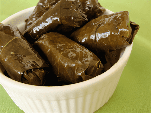 При подаче на стол долму переложить на блюдо. Отдельно подать простоквашу с натертым чесноком и солью, а также молотую корицу, смешанную с сахарной пудрой.