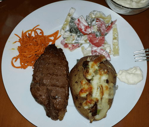 Говядина жареная (антрекот) с картофелем – это изысканное блюдо австрийской кухни, сочетающее нежное мясо с хрустящим картофелем. Антрекот, тщательно обработанный и прожаренный до золотистой корочки, раскрывает насыщенный мясной вкус, обогащенный специями. Этот рецепт берет начало в традициях европейских мясных блюд, подчеркивая простоту приготовления и богатство вкусов. Подача с ароматным жареным картофелем, пикантным хреном и свежей зеленью делает его идеальным выбором для сытного ужина. Такое блюдо прекрасно сочетается с красным вином, а растопленное масло и мясной сок придают особую глубину вкусу. Говядина жареная с картофелем – это не просто еда, а настоящий гастрономический опыт, пропитанный теплом домашних традиций.