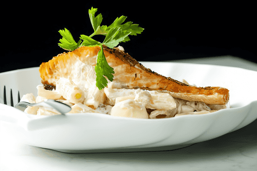 Осетрина по-итальянски с пастой — изысканное блюдо, сочетающее роскошь морской рыбы и насыщенность итальянской кухни. Осетр, обладающий плотным, нежным мясом, припускается в белом вине с луком и томатами, впитывая тонкий аромат и кислотность ингредиентов. Гармонию вкуса дополняют макароны, отваренные до идеальной текстуры и покрытые сливочным маслом и тертым сыром. Финальный аккорд — насыщенный соус из рыбного сока, лимона и томатного соуса, обогащающий блюдо легкой пикантностью. Такое угощение идеально подходит для торжественного ужина или просто для наслаждения утонченными вкусами Средиземноморья. Прекрасно сочетается с белыми сухими винами и свежими овощами. Элегантное, сбалансированное блюдо, подчеркивающее богатые гастрономические традиции Италии.