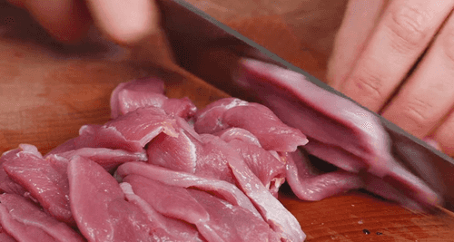 Утиную грудку (без кожи) нарезать тонкими ломтиками.
