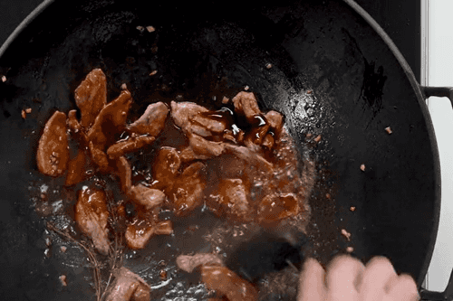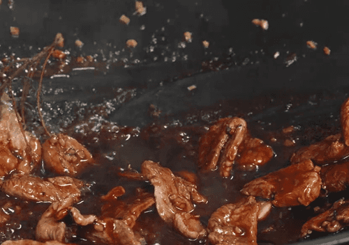 Выложить грудку и обжаривать на сильном огне, пока жидкость не испарится, а мясо не подрумянится.