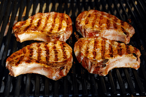 Обжарить на гратаре (гриле, в том числе отлично получается на одноразовом гриле, который сейчас продается во всех супермаркетах, только для этого нужен открытый балкон). Жарить по 4-5 минут с каждой стороны до образования корочки.