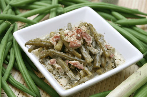 Лук-шалот и ветчину мелко покрошите, горох очистите, от стручков фасоли отрежьте грубые кончики, а латук тонко настрогайте.