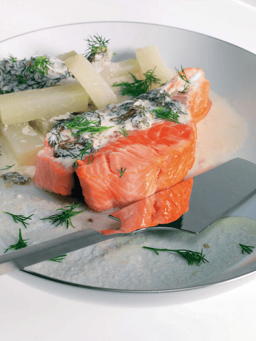 Лосось с соусом из сметаны и щавеля