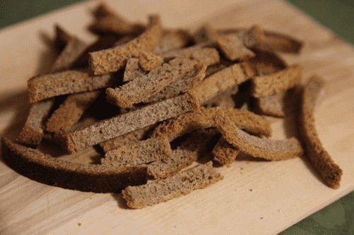 Корочки хлеба подсушить в духовке.