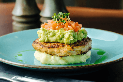 Сочные котлеты из трески с картофельным пюре и авокадо