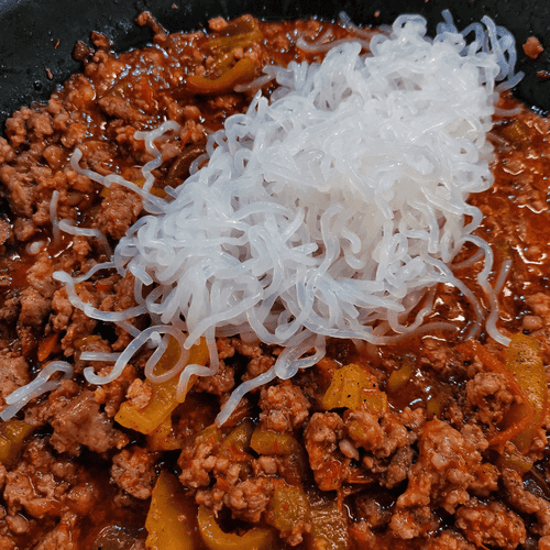 Кето-вог с овощами и мясом — это яркое и питательное блюдо, вдохновленное восточной кухней, но адаптированное под принципы низкоуглеводного питания. Сочетание нежного свиного фарша, пикантного перца чили и насыщенного соуса шрирача придает блюду острый, насыщенный вкус. Болгарский перец добавляет свежести и легкой сладости, а ширатаки — альтернативу традиционной лапше без лишних углеводов. Нежный сыр моцарелла плавится, объединяя все ингредиенты в гармоничное сочетание, а пармезан завершает картину легкой солоноватой ноткой. Это блюдо идеально подходит для тех, кто придерживается кето-диеты, но не хочет жертвовать насыщенным вкусом и разнообразием текстур. Прекрасно подходит для ужина или обеда, когда хочется чего-то пряного, сытного и полезного.