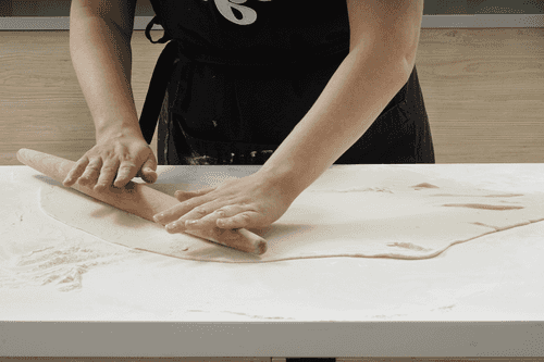 На присыпанном мукой столе раскатать тесто в тонкий пласт.