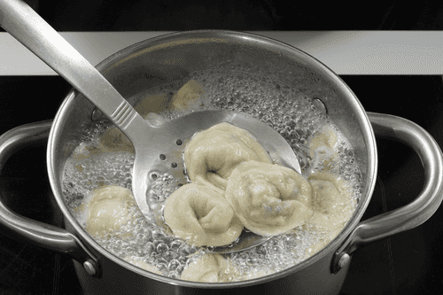 Если варить пельмени сразу, их нужно закинуть в кипящую воду на 5 минут. Воду солить не нужно.