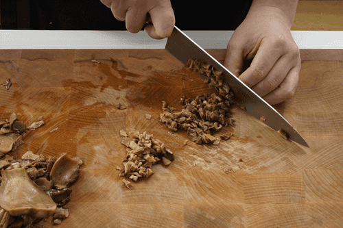 Грибы мелко нарезать, оставив несколько для украшения.