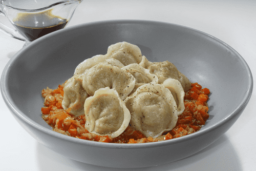 Постные пельмени с тыквой и кедровыми орешками – это кулинарное воплощение русской традиции адаптированной к современным вкусовым предпочтениям. Тесто, мягкое и эластичное благодаря заварному методу приготовления, обрамляет нежную начинку из сладковатой тыквы, жареного лука и пикантных кедровых орехов, создавая богатую палитру вкусов. Эти пельмени идеально подходят для постного питания, сохраняя при этом насыщенность и сытность традиционного блюда. Они прекрасно сочетаются с перечным соусом, который придаёт им легкую пикантность, а тыквенное масло раскрывает глубину вкуса и добавляет шелковистую текстуру. Блюдо особенно хорошо в прохладные осенние дни, когда хочется согреться чем-то уютным и ароматным. Постные пельмени с тыквой – это гастрономический мост между старинными русскими рецептами и современными вкусами.