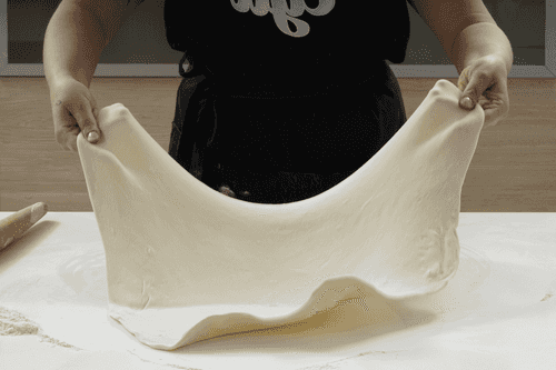 На присыпанном мукой столе раскатать тесто в тонкий пласт.