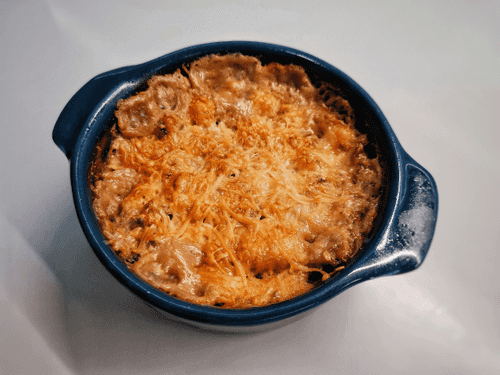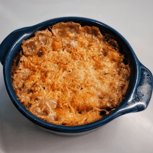 Жюльен с трюфельным соусом — изысканное блюдо авторской кухни, которое воплощает роскошь и утонченность вкуса. Этот рецепт объединяет нежные шампиньоны, томлённые в сливках с творожным сыром, ароматным чесноком и луком. Финальный штрих — трюфельный соус, который придаёт блюду благородный вкус с землистыми оттенками. Запечённый под слоем моцареллы, пармезана и козьего сыра, жюльен приобретает золотистую корочку и насыщенную текстуру. Это гастрономическое произведение идеально подходит для торжественных ужинов или особых случаев, когда хочется удивить гостей чем-то исключительным. Жюльен принято подавать горячим, наслаждаясь его богатым ароматом и бархатистой консистенцией. Вкус, балансирующий между кремовой мягкостью и глубокой трюфельной нотой, делает его настоящим кулинарным шедевром.