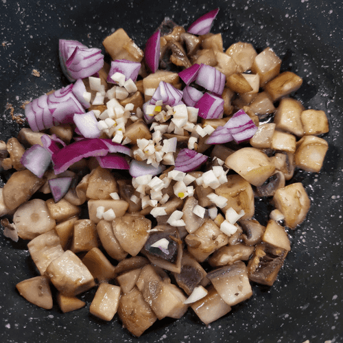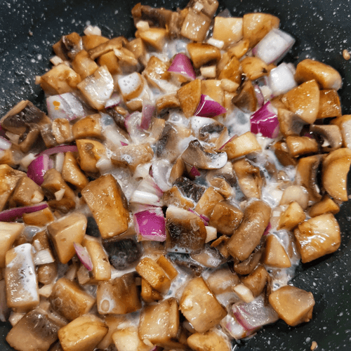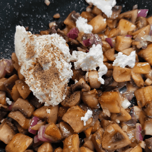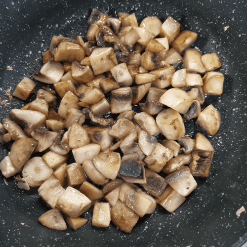 Объединить грибы с моцареллой в форме для запекания. Добавить трюфельный соус.