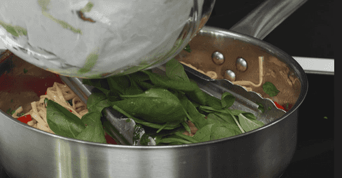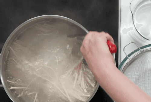 Закинуть в кастрюлю лапшу и варить около минуты.