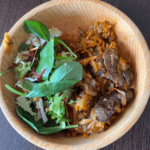 Печень кролика с зирой — это блюдо, пропитанное ароматами восточных специй и домашнего уюта. В русской кухне печень ценится за свою нежность и насыщенный вкус, а добавление зиры придаёт ей лёгкую пряность и пикантность. Лук и морковь, обжаренные на смеси сливочного и оливкового масла, смягчают вкус печени, а салатные листья добавляют свежесть в финальной подаче. Это блюдо идеально сочетается с лёгкими гарнирами и подходит для уютного семейного ужина или торжественного застолья. Благодаря быстрому приготовлению и глубине вкуса оно становится прекрасным выбором для ценителей простой и изысканной кухни.