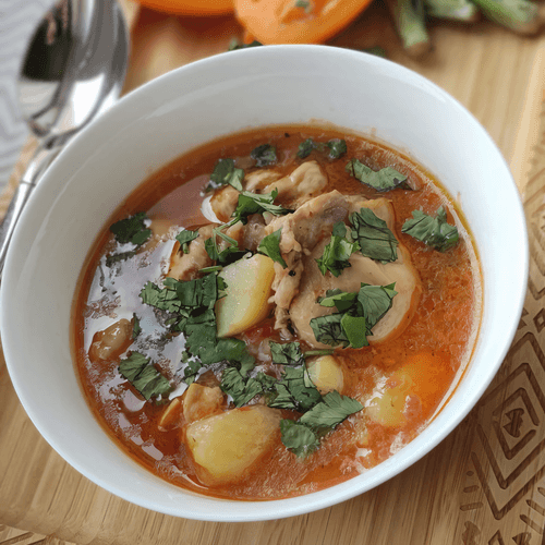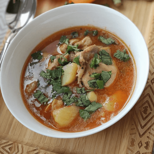 Жаркое с курицей и картофелем — это душевное, сытное блюдо русской кухни, вобравшее в себя простоту и тепло домашнего очага. История его восходит к традиционным деревенским трапезам, где еда должна была быть питательной и доступной. Нежные кусочки курицы, пропитанные ароматом пассерованного лука и чеснока, томятся вместе с золотистыми кубиками картофеля в насыщенном томатном соусе с хмели-сунели, создавая идеальный баланс вкусов — от легкой кислинки до глубокой пряности. Блюдо обладает мягкой текстурой, насыщенным ароматом и прекрасной сочностью благодаря медленному тушению. Подача с зеленью добавляет свежести и завершает гастрономическую гармонию. Оно отлично подходит для уютных семейных обедов и ужинов, наполняя дом теплом и традицией.