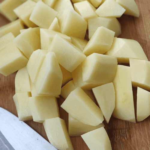Картофель разрезать на крупные кубики.