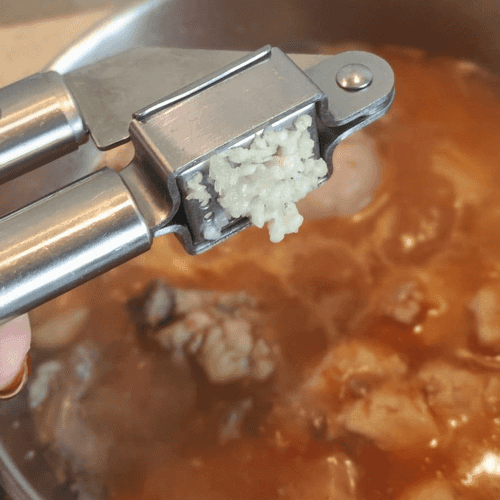 На этом же этапе выдавить оставшиеся 3 зубчика чеснока, тогда блюдо насытится приятным чесночным ароматом. Продолжить томить до готовности.