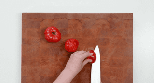 Мелко нарезать томаты.
