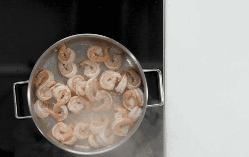 Очистить креветки.