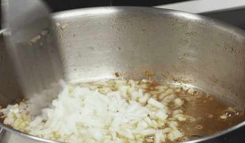 Добавить в сковороду лук, жарить до золотистого цвета.