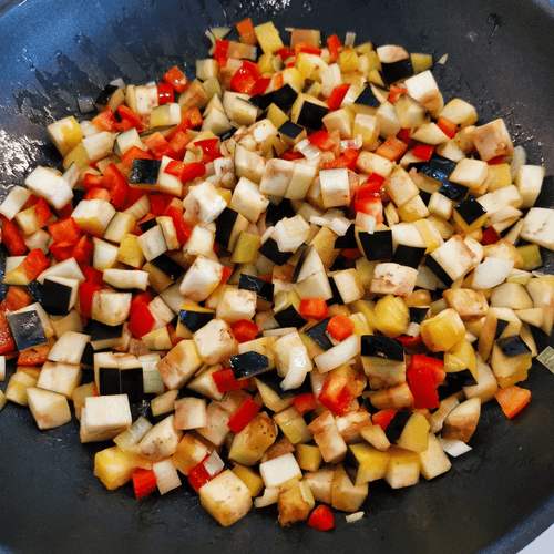 Добавить его в рагу и перемешать. Обжаривать еще 1–2 минуты.