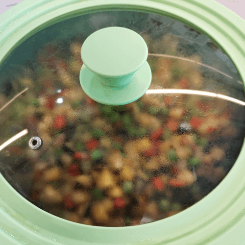 Через минуту убавить огонь, перемешать и накрыть крышкой.