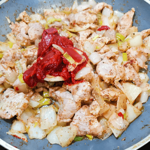 Добавить томатную пасту.