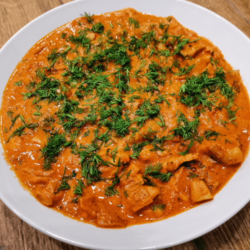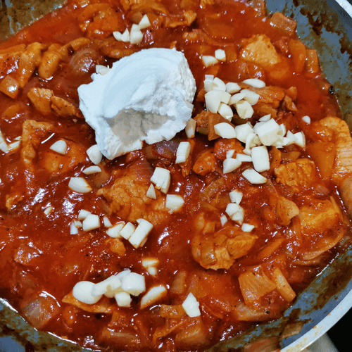 Гуляш из свинины – это нежное, ароматное блюдо с глубокой историей. Хотя гуляш традиционно ассоциируется с венгерской кухней, этот вариант – авторская интерпретация, в которой мягкость свиного окорока сочетается с пряностью сумаха и легкой остротой чили. Сметана придаёт гуляшу сливочную нежность, а томатная паста добавляет приятную кислинку, балансируя вкус. Заправка горчицей и маслом делает мясо насыщенным и пикантным. Лук и чеснок вносят сладковатые и терпкие нотки, а свежий укроп – завершающий штрих. Это блюдо идеально подойдёт к домашнему ужину, особенно если подать его с гарниром – например, картофельным пюре или свежим хлебом, который впитает в себя всю его сочность и насыщенные ароматы.