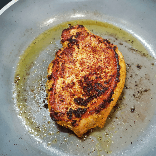 Стейк из свиного карбонада — это великолепное блюдо кавказской кухни, которое сочетает в себе ароматные специи и сочное мясо. Исторически карбонад — это часть свинины, известная своим нежным вкусом и малым содержанием жира. Маринованный в горчичном масле с добавлением хмели-сунели и свежемолотых перцев, мясо приобретает глубину вкуса и пикантные нотки. Сумах и чили придают блюду легкую кислинку и остроту, делая его насыщенным и многогранным. Готовится этот стейк на раскаленной сковороде, что позволяет сохранить сочность и создать аппетитную корочку. Подается горячим, идеально сочетается с овощами и свежими травами. Этот стейк подходит для уютного домашнего ужина или праздничного застолья, даря истинное гастрономическое удовольствие.