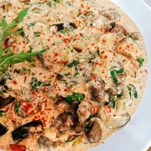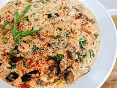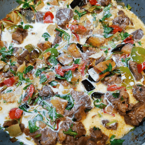 Пёркёльт из говядины – одно из знаковых блюд венгерской кухни, вобравшее в себя ароматы специй и богатство вкусов свежих ингредиентов. Исторически это кушанье восходит к традициям венгерских пастухов, которые готовили мясо на открытом огне, придавая ему насыщенный, глубокий вкус. В этом рецепте гармонично сочетаются жирная говядина, овощи, сливки и пряности, создавая нежную, пикантную текстуру. Имбирь и чеснок придают блюду согревающую остроту, а рукола вносит свежую нотку. Горчичное и сливочное масло придают особую бархатистость. Подается пёркёльт горячим, в качестве сытного, согревающего блюда, которое идеально сочетается с традиционными венгерскими гарнирами, такими как галушки или картофель. Этот густой и ароматный мясной гуляш – настоящий гастрономический шедевр, которым можно наслаждаться в уютной домашней атмосфере.