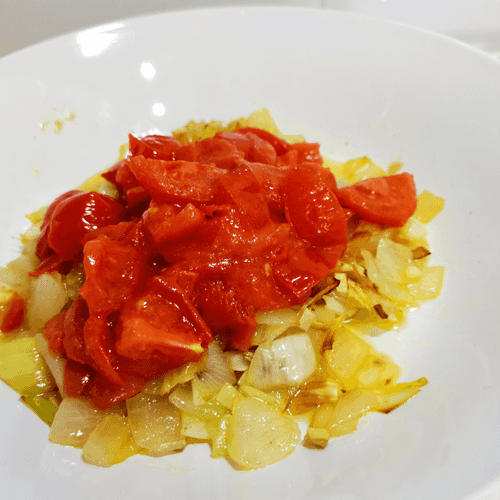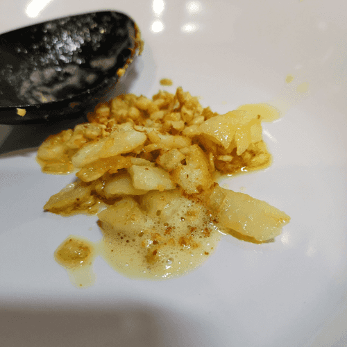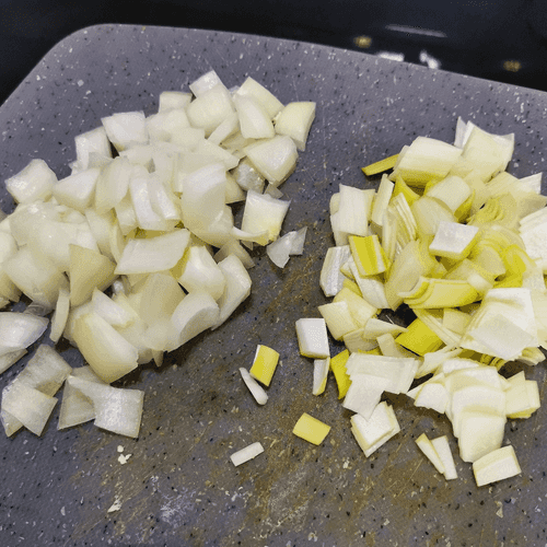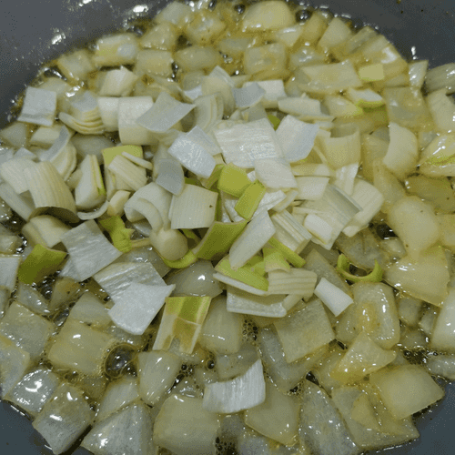 В этом же масле обжарить до румяного оттенка оба вида лука. Затем переложить их к имбирю и чесноку.