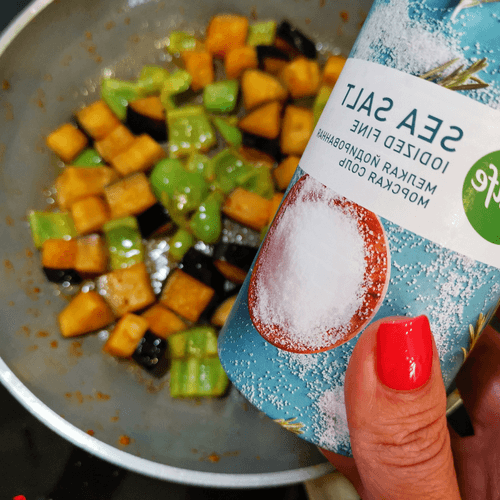 Через 3–4 минуты перемешать и посолить. Убавить огонь до среднего.