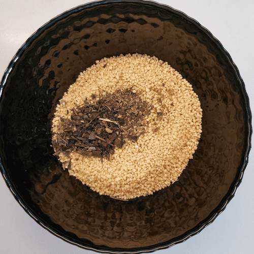 Кускус насыпать в глубокое блюдо и добавить майоран.