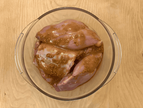 Вылить в миску по 2 столовые ложки каждого соуса.
