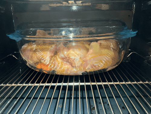 Поставить в разогретую до 200 градусов духовку на 1,5 часа.